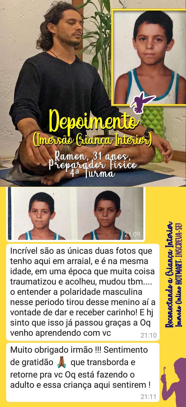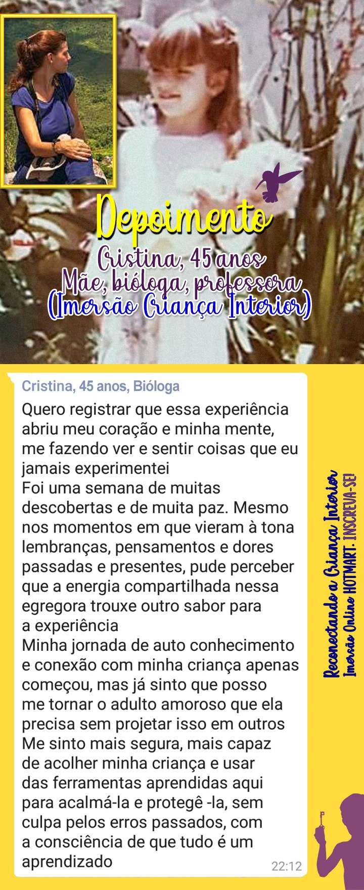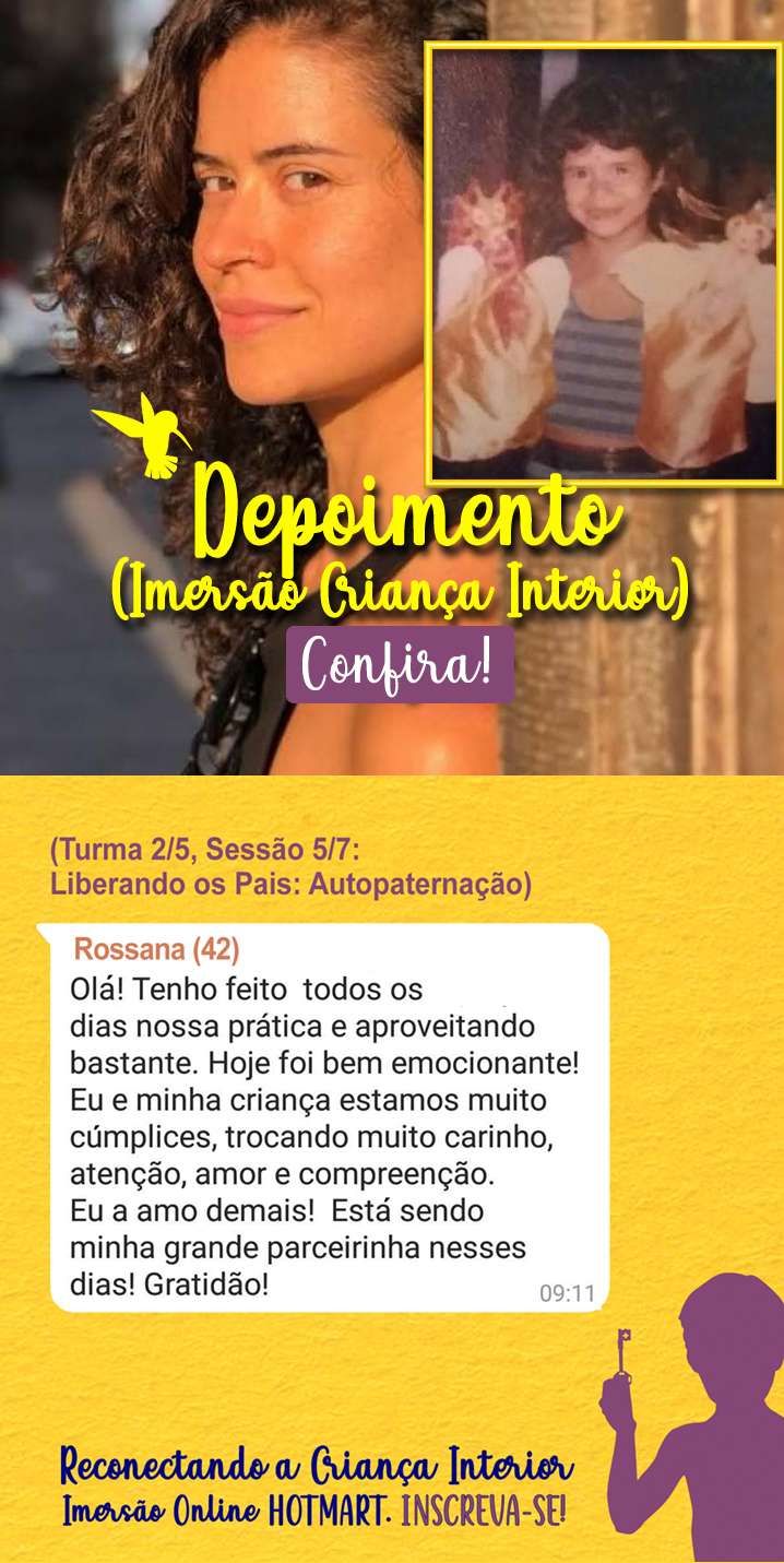 Agarre esta oportunidade de autodesenvolvimento, expansão da consciência, autoestima e autonomia no seu processo. A criança interna que você traz dentro de si merece esta atualização e seu Lado Adulto também.